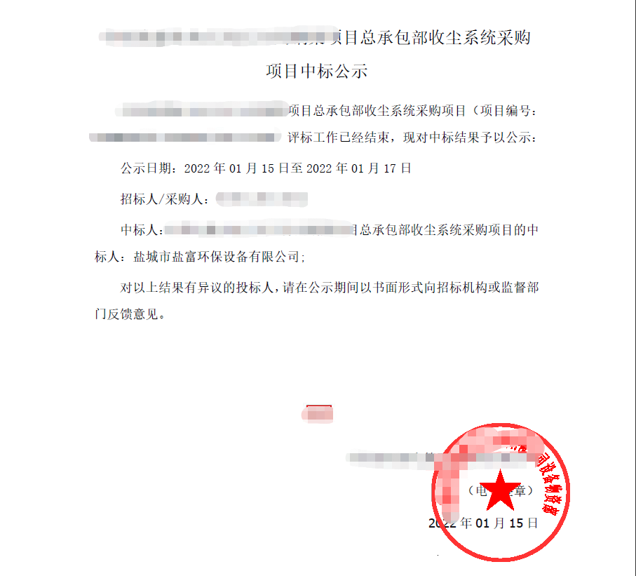 開年傳喜訊,近日從招標單位傳來好消息,鹽富環(huán)保成功中標又一大型砂石骨料項目總承包收塵系統(tǒng),實現(xiàn)開門紅。