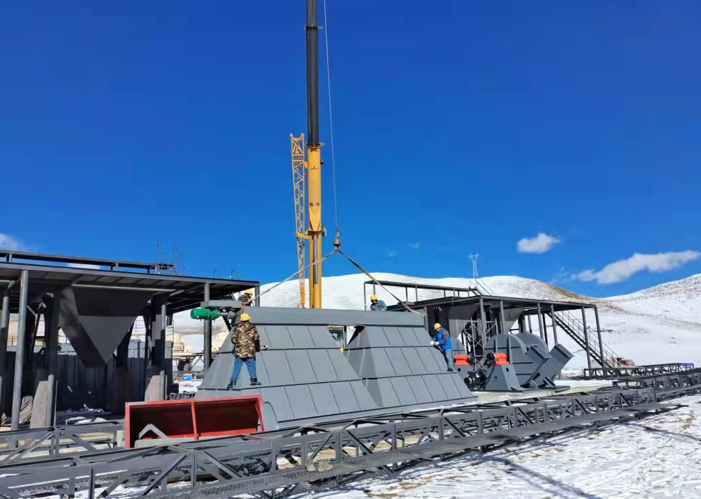 鹽富環(huán)保理塘項目配套的除塵和選粉設(shè)備進入安裝調(diào)試階段,為確保川藏鐵路理塘段項目的順利推進,我司參與此項目的所有成員,在春節(jié)這樣萬家團聚的節(jié)日里,都堅守在自己的工作崗位上,虎力全開,干勁十足!理塘氣候?qū)俑咴瓪夂騾^(qū),海拔約4300米, 氣溫-30.6℃,冬季干冷而漫長。由于項目地點海拔高,氧氣稀薄,許多人有高原反應(yīng),但他們都努力克服身體上的種種不適,以積極樂觀的心態(tài)面對種種困難,活出了當(dāng)代勞動者的風(fēng)采!這幾天,風(fēng)雪交加,氣候寒冷,我們的施工現(xiàn)場仍然是一派熱火朝天!